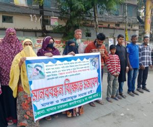 জমি দখলের চেষ্টার অভিযোগে মানববন্ধন দ্রুত বিচার ও গ্রেফতারের দাবি