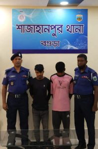 গ্রেফতারকৃত আসামীরা হলো, মোঃ সজিব ছোট সজিব (১৯), পিতা মোঃ ফিরোজুর রহমান টিটু, মোঃ সজিব বড় সজিব (২১), পিতা মোঃ মাসসুল হক মন্ডল, উভ সাং জয়শিং পশ্চিমপাড়া, থানা-ধুনট,বগুড়া।